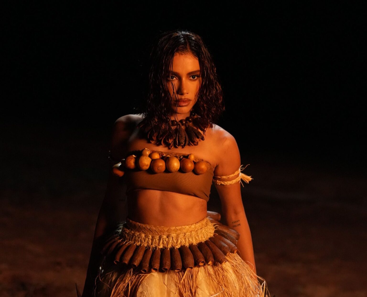 Nesse cenário, Anitta contracena com Mayara Lima, rainha de bateria da Paraíso do Tuiuti. A coreografia, criada por Luciana Xavier, traz referências ao maculelê e aos arquétipos dos orixás.