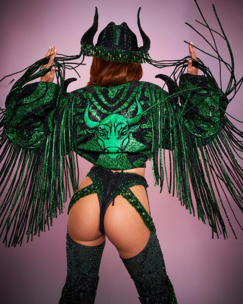 Para a apresentação, a artista apostou em um look marcante inspirado no signo de Touro, reforçando a proposta estética do espetáculo. O figurino dialoga com força, sensualidade e simbolismos ligados à astrologia, eixo central do Carnaval da cantora em 2026.