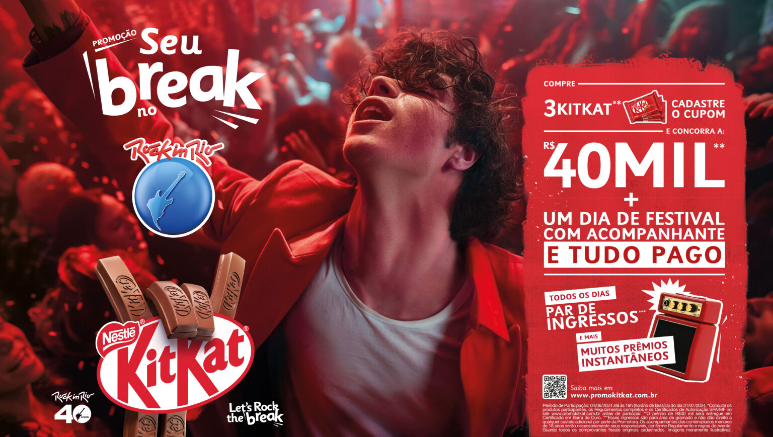 A participação na promoção “Seu break no Rock in Rio” é válida em todo o território nacional até o dia 31 de julho e todos os detalhes sobre o regulamento estão disponíveis no site oficial da promoção: www.promokitkat.com.br.