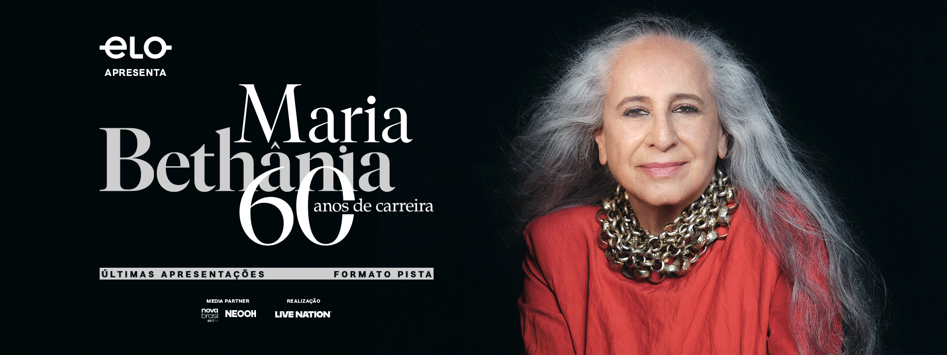 Com o sucesso estrondoso de sua turnê e ainda depois da adição de datas extra, Maria Bethânia chega com as últimas datas em São Paulo para sua turnê comemorativa de 60 anos de carreira. Esses últimos shows ocorrem nos dias 25 e 26 de outubro, na Tokio Marine Hall, e a configuração especial será no formato Pista para quem gosta de curtir dançando.