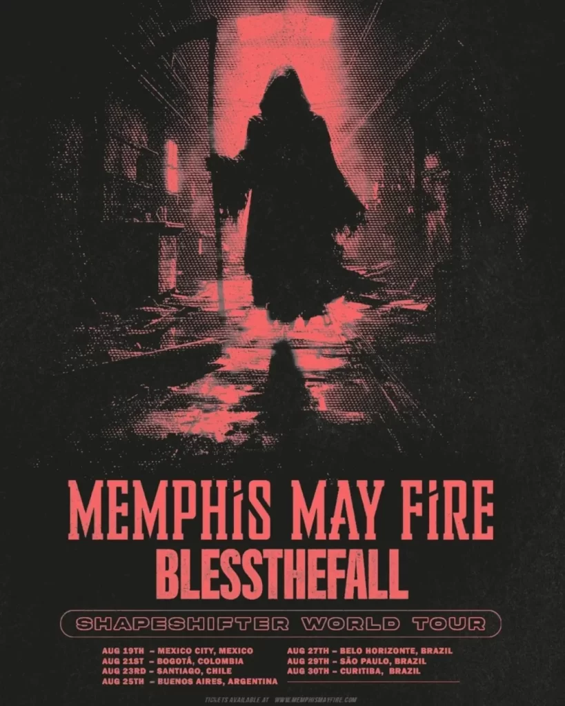 O Memphis May Fire, liderado pelo vocalista Matty Mullins, construiu uma carreira sólida dentro do metalcore moderno. Ao longo dos anos, o grupo lançou álbuns que ajudaram a moldar o som da cena, combinando peso, melodias marcantes e letras intensas. Consequentemente, a banda se tornou presença constante em grandes festivais e turnês internacionais.