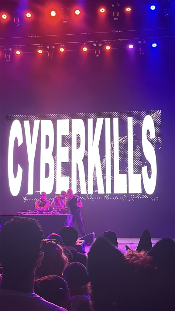 A noite começou com Risca Fada, que abriu o evento com uma apresentação empolgante. Logo em seguida, Cyberkills assumiu o palco, entregando uma sequência de hits que preparou o público para o grande momento. Durante o set, o duo convidou Chameleo para cantar “Tokyo”, faixa em colaboração com Pabllo Vittar. Mesmo sem a presença da artista, a performance incendiou o público.