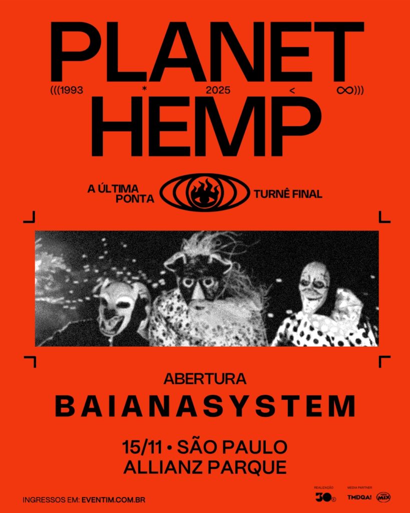 O Planet Hemp prepara um encerramento memorável para sua turnê de despedida, “A Última Ponta”, com um show especial em São Paulo, no dia 15 de novembro, no Allianz Parque. Para marcar esse momento simbólico, o grupo convidou o BaianaSystem para abrir a noite, criando um encontro potente entre duas gerações da música brasileira.
