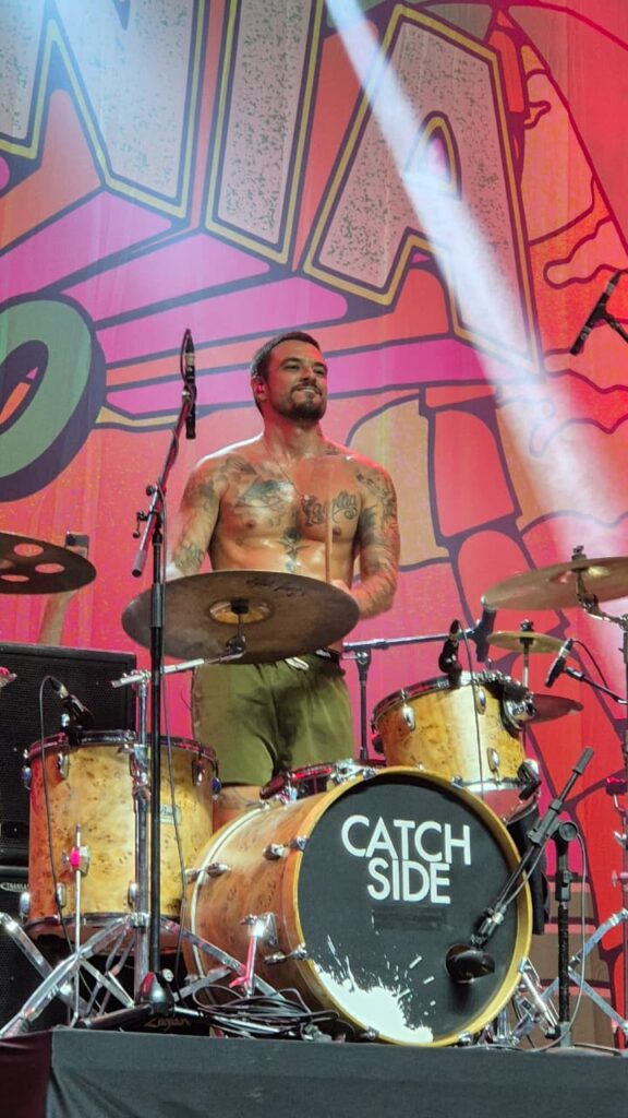O Catch Side apresentou uma energia mais introspectiva, ligada à memória afetiva e à intensidade emocional do emo nacional. Faixas que marcaram uma geração foram cantadas com entusiasmo pelo público, incluindo fãs mais jovens, e o show ganhou um clima de coro coletivo que reforçou a presença histórica da banda. Entre os momentos de interação, as fãs Camila e Carol conseguiram pegar a baqueta do baterista Rodrigo Galha, gerando grande emoção.