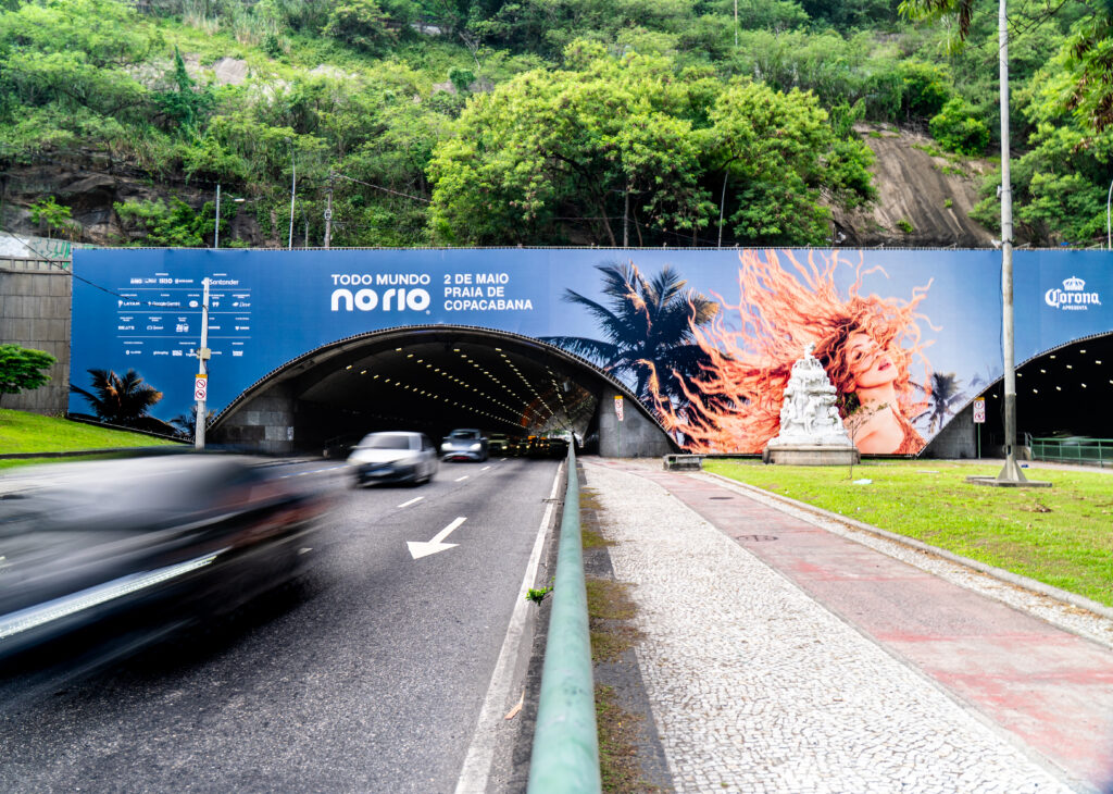 Painel gigante é instalado em túnel da cidade enquanto estrutura do evento “Todo Mundo No Rio” avança para apresentação gratuita